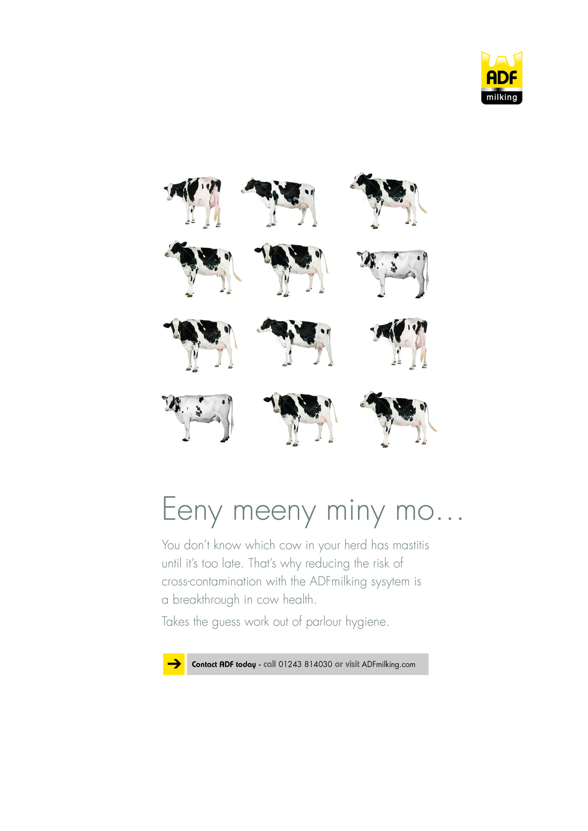 Imagery, lead copy and design elements were all created specifically for the brand and with all marketing material in mind, whether digital or print, so the website dovetailed easily into the family of marketing tools we were already developing for ADF Milking.